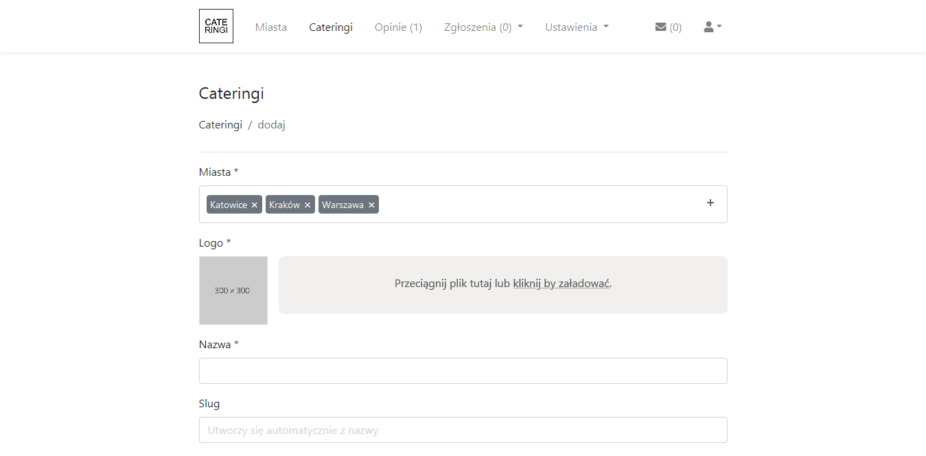 - Dodawanie firm i panel dla właścicieli: formularz zgłoszenia cateringu (z uploadem logo), rejestracja i weryfikacja konta, możliwość zarządzania własnymi wpisami po akceptacji